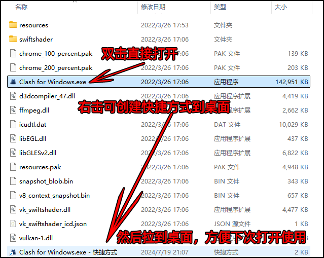 (或者右击Clash for Windows.exe创建快捷方式,再拉到桌面方便使用)